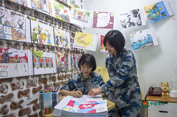 兵心作画,读图学史。该旅某营教导员梁峰介绍,党史学习教育中,几名有绘画特长的女兵提出想把学习收获通过漫画形式展现出来,把有意义的历史细节分享给战友。第一幅漫画《南湖红船》亮相课堂后,一名坐在船头的少女引起了官兵的注意,原来她是“中国共产党第一位会务工作者”王会悟,一大的顺利召开离不开这位“红船哨兵”。有趣的细节一下子吸引了大家的关注,不少官兵纷纷报名要加入绘画创作小组。