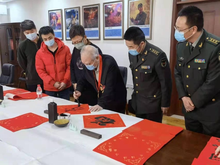 离休老兵和书法家们共同挥毫泼墨,一副副对联把年味渲染得更加浓郁。抗美援朝老兵朱贯中说:“我们要永远感恩党、感恩人民军队,继续发挥自身优势,为弘扬爱国主义、革命英雄主义精神贡献自己的力量。”(钟一波、祝晶晶)