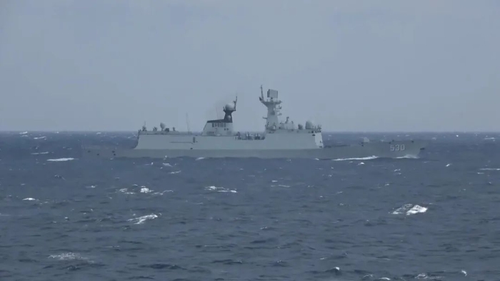 执行警巡任务的东部战区海军多艘驱护舰,高速向台岛周边海域慑压进逼,灵活机动抢占有利阵位,根据现场态势,组织近距突击、远域慑阻、防空反导等课目演练。