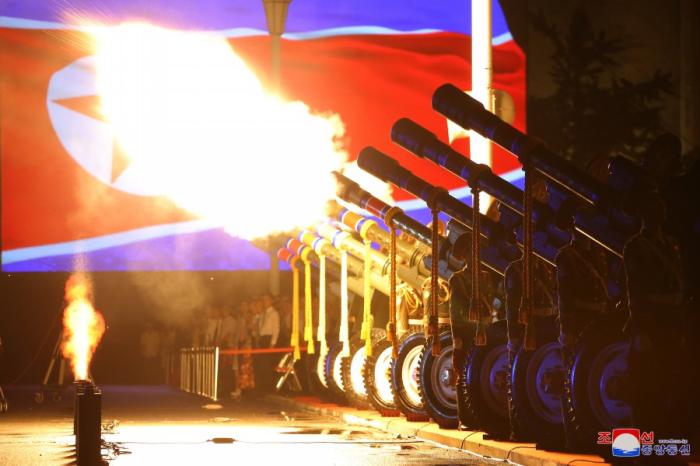 中新网7月29日电 据朝中社报道,当地时间27日晚,朝鲜庆祝祖国解放战争胜利70周年盛大阅兵式在金日成广场上举行。