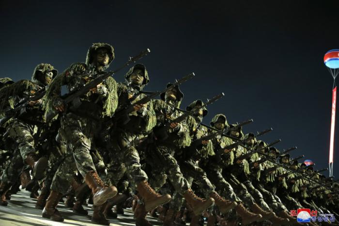 据报道,朝鲜劳动党总书记、朝鲜国务委员长金正恩出观看阅兵式,听取报告并检阅了仪仗队和朝鲜人民军主要部队军旗。朝鲜劳动党中央军事委员会副委员长李炳哲检阅了阅兵部队。
