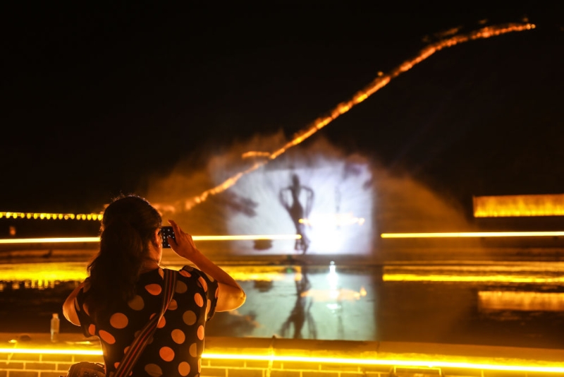2023年6月30日,游客在辽宁省葫芦岛市绥中县九门口长城景区观看水幕电影。新华社记者 潘昱龙 摄