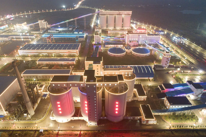 夜幕时分的曹家滩智慧矿山(2021年10月12日摄)。曹家滩智慧矿山通过建设智慧化矿山系统,使矿井生产流程实现智能化,提高了开采效率,降低了运行成本。新华社记者 邵瑞 摄