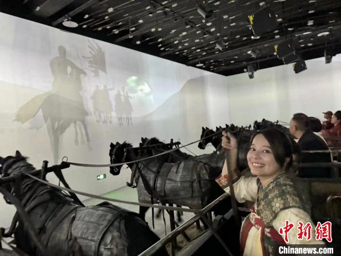 在武威汉唐天马城体验馆内,两岸媒体人沉浸式体验古人的生活日常;借助现代技术,搭乘战马征战沙场,与古人零距离互动;跟随导览人员,学习汉唐礼仪,体验中国古代礼仪文化……这让阿雅“玩嗨了”。“太刺激、太激动了!”她说,体验“征战”的互动场景让她身临其境,最后随“战士们”胜利归来,内心充满感动。