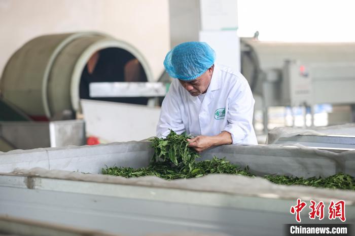 图为杨旻伦在制作茶叶。中新网记者 瞿宏伦 摄