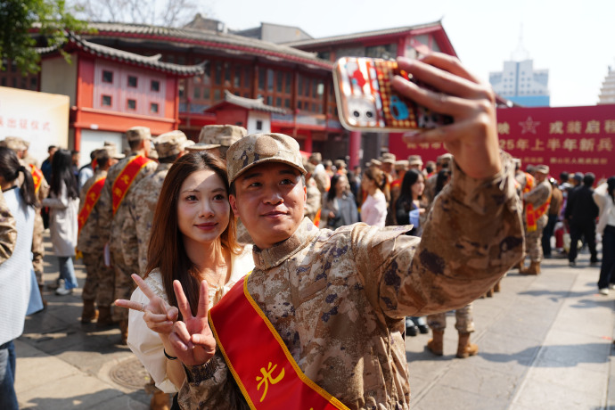 近日,昆明市西山区举行2025年上半年新兵出征仪式。仪式在雄奇瑰丽的近日楼城门前隆重举行,西山区军地主要领导和新兵家长参加此次活动,现场还准备了滇剧表演等文化节目为新兵壮行。临行前,新兵代表向在场父老乡亲庄严承诺:“请放心!我们绝不辜负祖国和人民的期望,我们将会在军营这个大熔炉里淬炼成钢,用实际行动书写优秀的军旅答卷!”(高帅、刘冉阳)