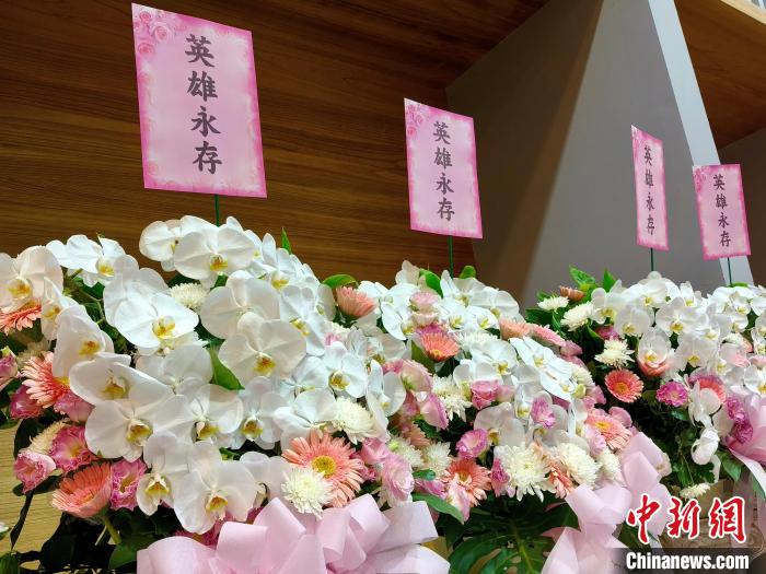24日一早,台北市怀爱馆景明厅外已聚集大批吊唁民众。厅内花篮环绕,挽联“英雄永存”“忠肝义胆”“中华铁汉”等格外醒目。