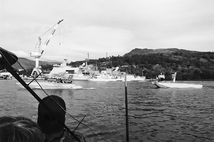 今年5月,美菲“肩并肩”联合演习期间,美军1艘T-38“魔鬼鱼”无人艇(右)由美海军的突击快艇拖行前进,准备实施有人/无人协同作战演练。资料图片