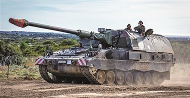 德国联邦国防军PzH2000自行榴弹炮参加军事演习。