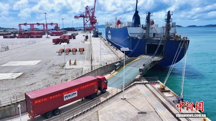 据统计,“台北快轮”总吨位18080吨,一次最大可载运230个标准集装箱,采用集装箱连车架一同运输的方式,载运跨境电商货物、快件、小贸市场货物以及一般贸易货物,为目前入境平潭港最大吨位货物滚装船。