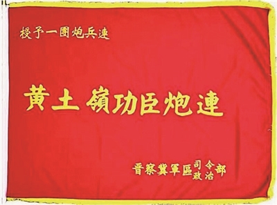 “黄土岭功臣炮连”战旗。