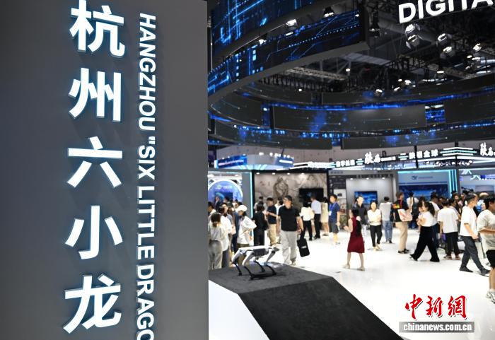 9月25日,“杭州六小龙”展区吸引参观者。当日,第四届全球数字贸易博览会展览对公众开放,展出的AR应用、机器人应用等吸引参观者。中新社记者 王刚 摄