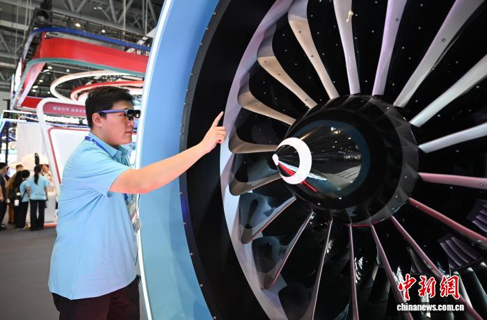 9月25日,参观者体验长龙航空AR检修。当日,第四届全球数字贸易博览会展览对公众开放,展出的AR应用、机器人应用等吸引参观者。中新社记者 王刚 摄
