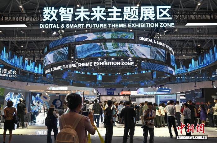 9月25日,民众参观数智未来主题展区。当日,第四届全球数字贸易博览会展览对公众开放,展出的AR应用、机器人应用等吸引参观者。中新社记者 王刚 摄