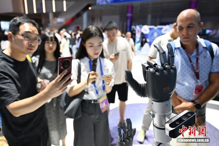 9月25日,强脑科技智能仿生手吸引参观者。当日,第四届全球数字贸易博览会展览对公众开放,展出的AR应用、机器人应用等吸引参观者。中新社记者 王刚 摄