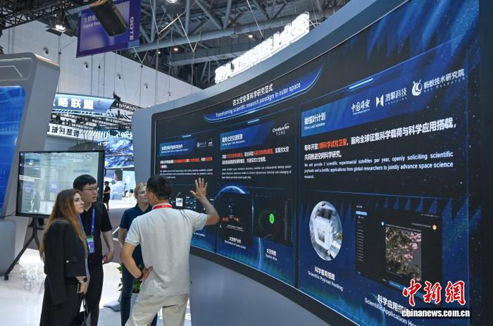 9月25日,中外参观者驻足了解之江实验室太空AI。当日,第四届全球数字贸易博览会展览对公众开放,展出的AR应用、机器人应用等吸引参观者。中新社记者 王刚 摄
