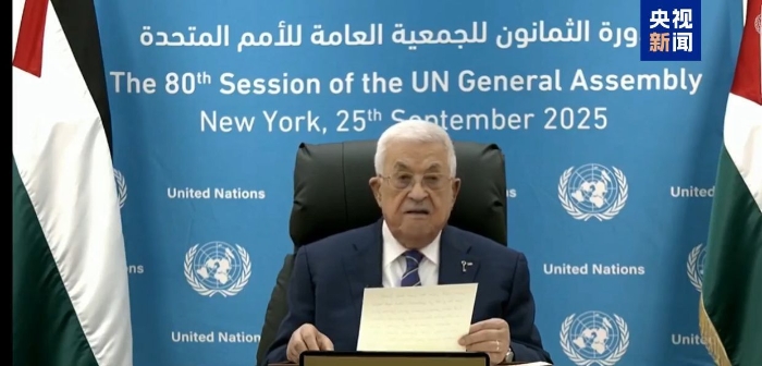 当地时间25日,巴勒斯坦总统阿巴斯以视频方式在第80届联合国大会上发表讲话,呼吁国际社会采取切实行动,立即停止加沙战争,实现公正、持久的中东和平。