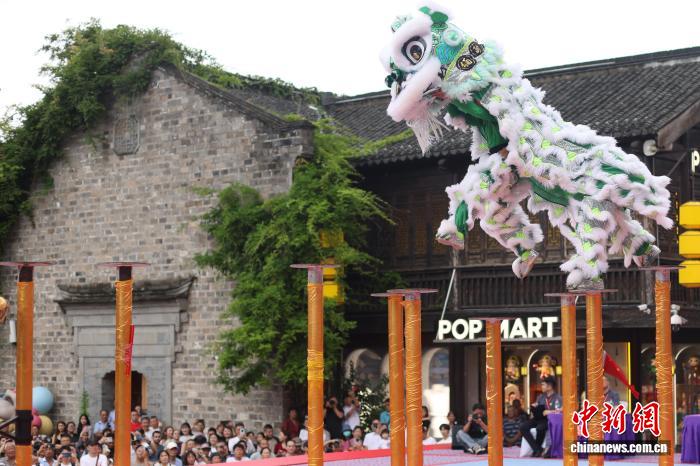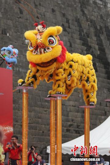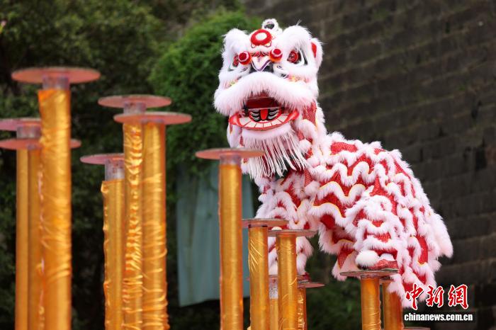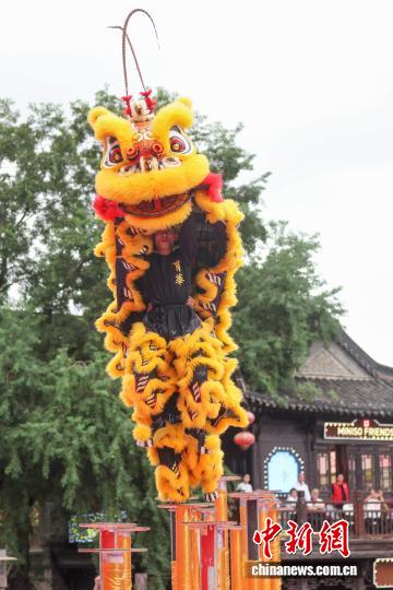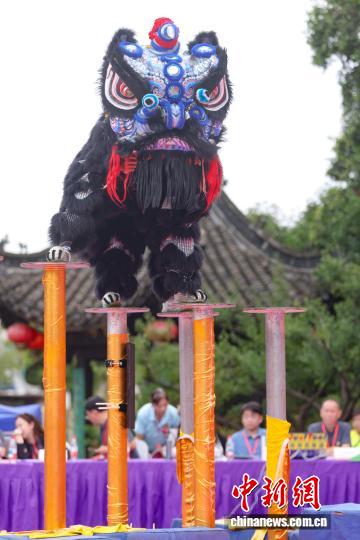图为来自江苏省龙狮运动协会的参赛选手在比赛中。中新社记者 泱波 摄