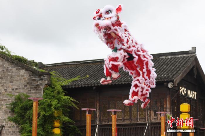 图为来自缅甸龙的传人龙狮团的参赛选手在比赛中。中新社记者 泱波 摄