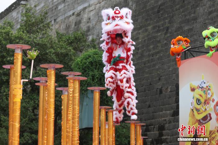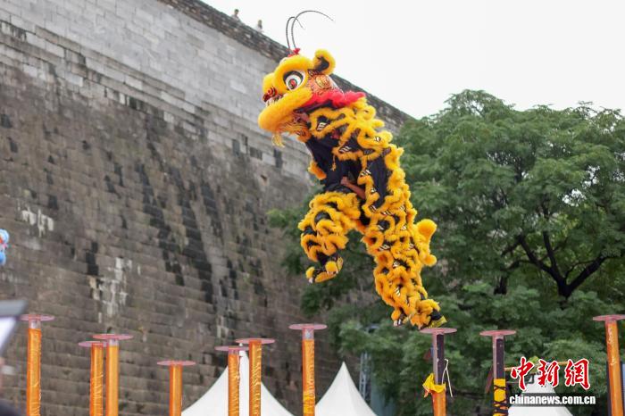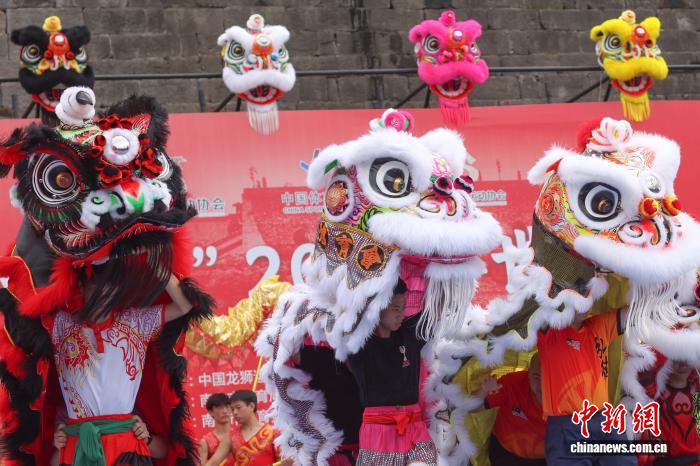 9月26日,“狮跃金陵·舞动世界”2025年世界华人狮王争霸赛在南京门东历史文化街区开赛,现场设置了南狮高桩自选套路、传统南狮两个“狮王”项目,以及舞龙舞狮表演赛,吸引了来自中国、加拿大、马来西亚、缅甸、南非、英国、美国、中国香港等国家和地区的龙狮队伍前来同场竞技。据悉,本次狮王争霸赛聚焦南狮流派,以其威猛的造型、艳丽的色彩、“喜怒哀乐”的神态演绎,尤其是高桩“采青”等高难度动作,展现出力量与柔韧的极致平衡。图为参赛队伍亮相。中新社记者 泱波 摄