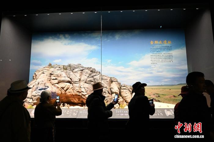 10月12日,内蒙古呼和浩特市,海外归国定居藏胞在内蒙古博物院了解金斯太洞穴遗址。当日,“侨连五洲·海外归国定居藏胞代表人士国情教育活动”在呼和浩特进入第一天行程。40余位海外归国定居藏胞代表,接下来将用近一周时间,在呼和浩特、包头、鄂尔多斯3地,直观了解内蒙古的人文历史、生态建设与现代产业等方面内容。中新社记者 刘文华 摄