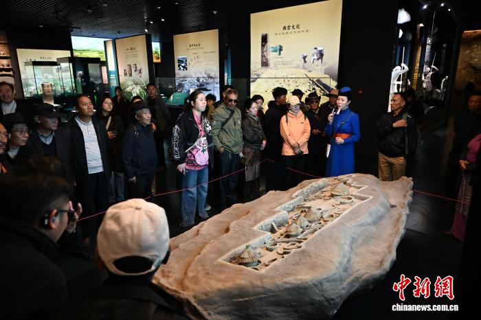 10月12日,内蒙古呼和浩特市,海外归国定居藏胞在内蒙古博物院了解二道井子遗址。当日,“侨连五洲·海外归国定居藏胞代表人士国情教育活动”在呼和浩特进入第一天行程。40余位海外归国定居藏胞代表,接下来将用近一周时间,在呼和浩特、包头、鄂尔多斯3地,直观了解内蒙古的人文历史、生态建设与现代产业等方面内容。中新社记者 刘文华 摄