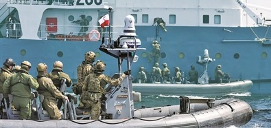 “哥特兰哨兵”演习期间,参演人员登上作战舰艇。