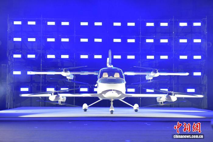 10月13日,新一代长航程电动垂直起降航空器(eVTOL)“VT35”在安徽省合肥市发布。这款被誉为“空中出租车”的新机型,为中长途空中出行打开了新可能。该航空器由亿航智能设备有限公司自主研发,采用串列翼双座布局,满载设计航程突破200公里。该航空器最大起飞重量为950千克,整机长度约8米、高度约3米、翼展约8米。中新社记者 储玮玮 摄