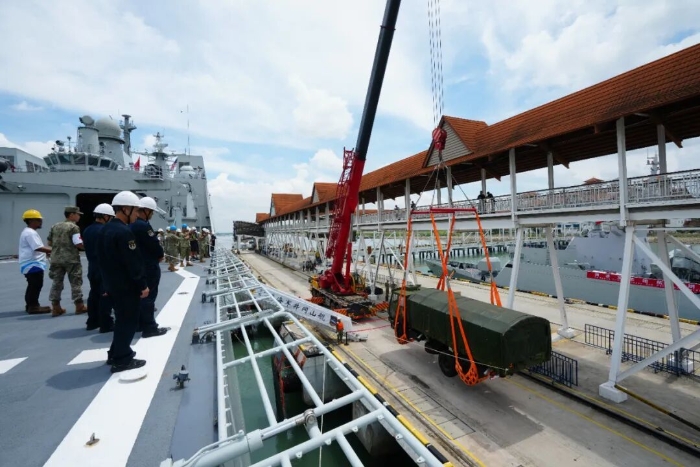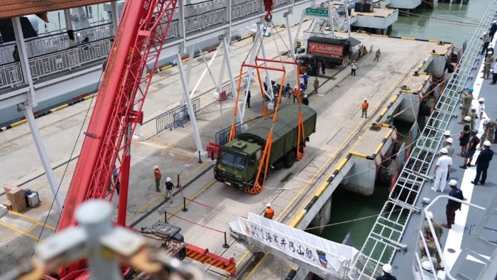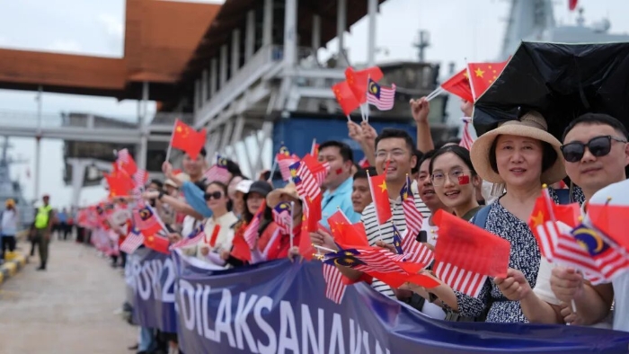 当地时间13日下午,参加“和平友谊-2025”联演的海军银川舰、井冈山舰、荆门舰抵达马来西亚巴生港并组织卸载,尔后陆空参演兵力分别摩托化机动至各自演习地域。至此,中方参演兵力按照预定计划全部顺利抵达目的地。马方派出军乐队及官兵在码头举行了隆重的欢迎仪式,中国驻马来西亚大使、华侨华人、中资机构及留学生代表等到码头欢迎中方参演官兵。