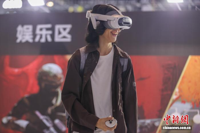 10月18日,江西南昌红谷滩区,民众佩戴VR眼镜在体验MR线下沉浸娱乐体验项目。中新社记者 刘力鑫 摄