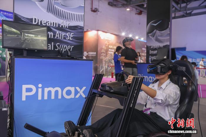 10月18日,江西南昌红谷滩区,民众在体验诠视科技的8K沉浸式高仿真MR飞行模拟器,该设备结合了AI与XR技术,是专业领域仿真训练变革的集成创新之作。中新社记者 刘力鑫 摄