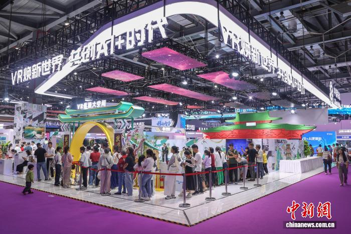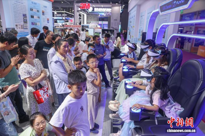 10月18日,江西南昌红谷滩区,众多观众在排队体验VR互动娱乐设备。中新社记者 刘力鑫 摄