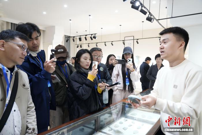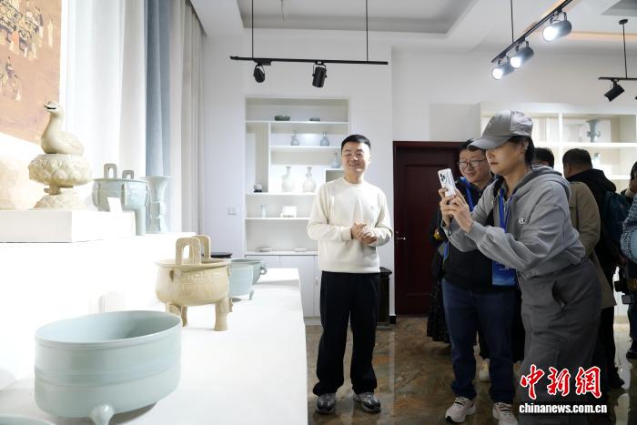 10月19日,河南平顶山汝州,参加“中国式现代化发展看河南”2025两岸媒体联合采访活动的数十位媒体人、自媒体从业者等走进中国汝瓷博物馆和汝瓷生产企业,感受千年汝瓷文化。图为台湾自媒体从业者在了解汝瓷文化。王佳宁 摄