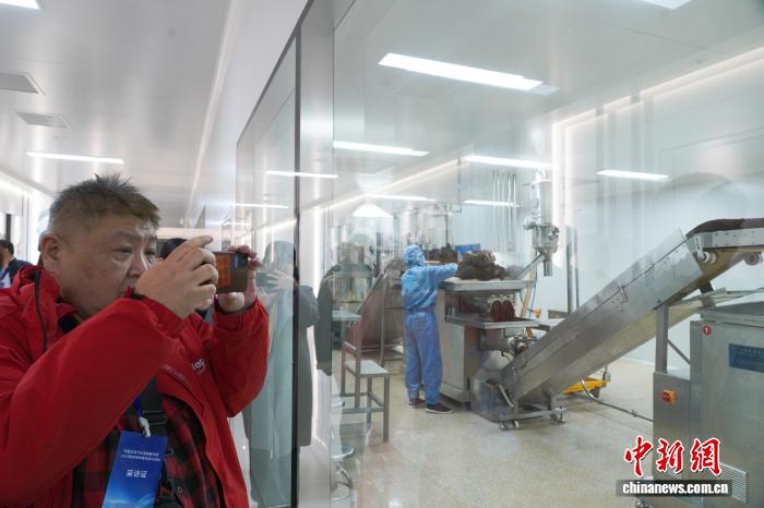 10月20日,“中国式现代化发展看河南”2025两岸媒体联合采访团走进河南南阳西峡县,数十位两岸媒体人探访仲景宛西制药股份有限公司,实地参观中药提取车间和智能化生产线,了解现代化生产工艺与传统中医药文化的融合创新。图为采访团成员了解当地食品产业的原材料。 王佳宁 摄
