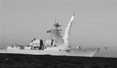 美海军舰艇发射“战斧”巡航导弹。