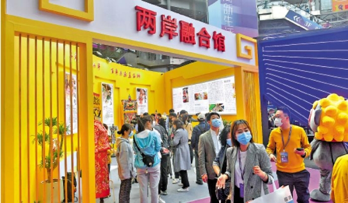 图:两岸关系和平发展、融合发展是通向统一的重要途径。图为在福建石狮举办的展会设有两岸融合馆。/资料图片
