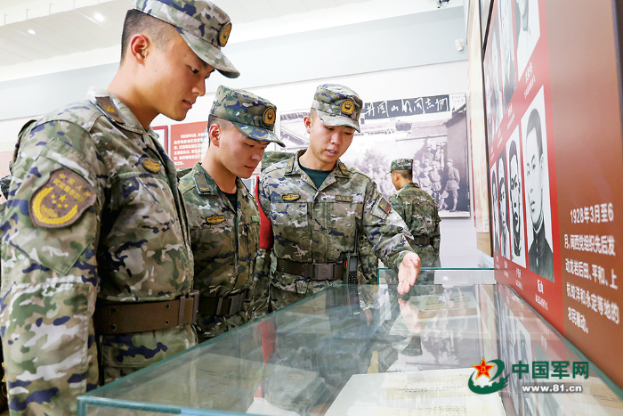 官兵参观古田会议纪念馆陈列的历史文物。张 祺摄