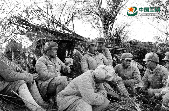 淮海战役期间,华东野战军某部炮兵战士开展“为人民立功”的讨论。邹健东摄