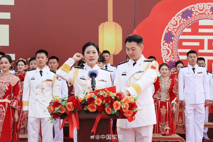 近日,北部战区海军某支队举办集体婚礼。在官兵家属的祝福中,32对身着军装与婚纱的新人携手开启人生新程。一起见证他们的幸福时刻(马海涛 张灵凯 鲁万琛 常稼尧 宋一鸣 周远志)