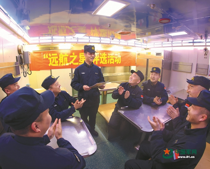 官兵在任务期间开展“远航之星”评选活动(资料图片)。 刘再耀摄