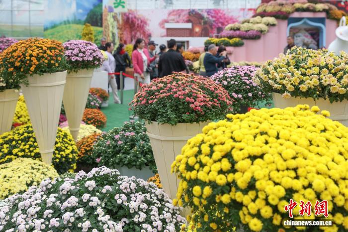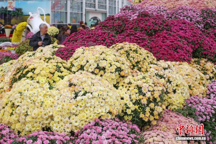 10月26日,南京农业大学湖熟菊花基地内,市民欣赏花型、花色各异的菊花。中新社记者 泱波 摄