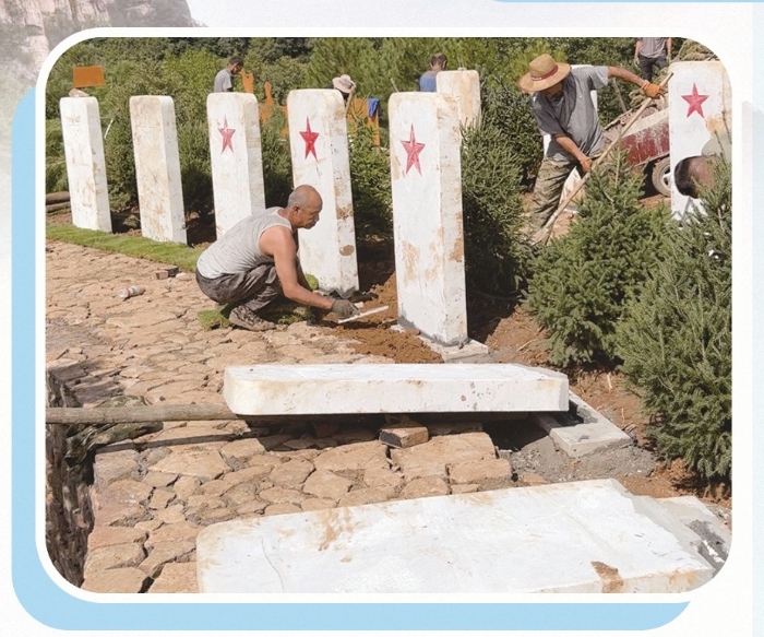 当地群众参与烈士墓修建。贾 惠摄