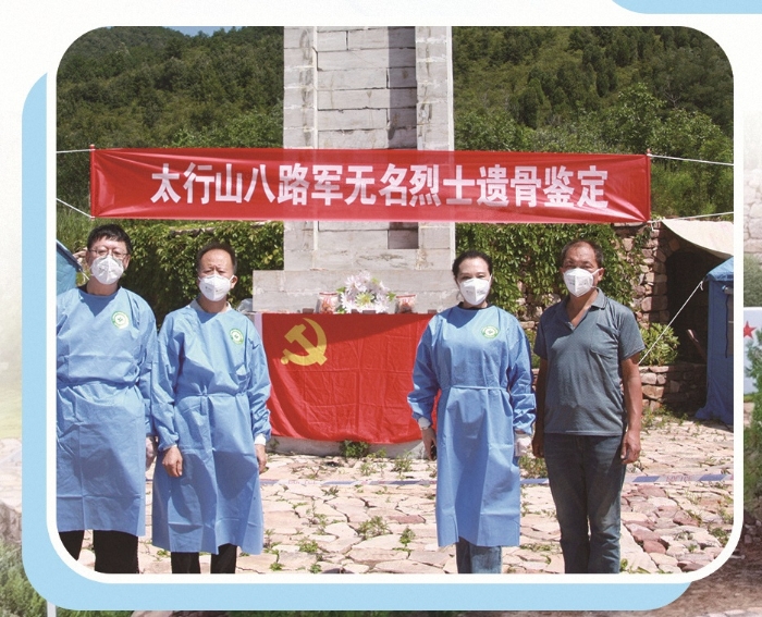 郭海波(右一)和遗骸鉴定工作人员合影。黎城县人武部供图