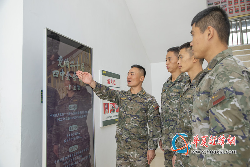 武警官兵利用广告机学习党的二十届四中全会精神。刘亿 摄