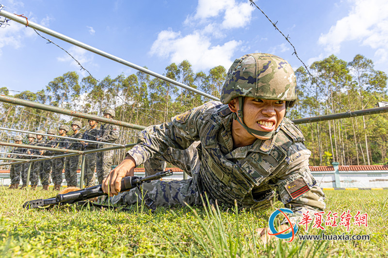 2025年10月27日,图为武警官兵快速通过障碍低姿网。