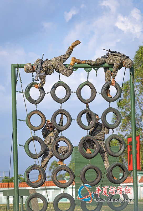 2025年10月27日,图为武警官兵快速通过障碍独木桥。
