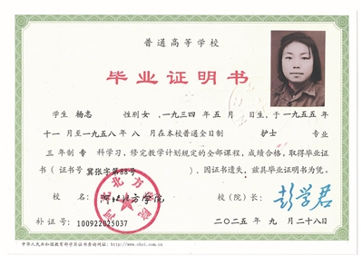 9月26日,档案馆工作人员将杨志学籍卡片上的证件照片翻拍冲印,为毕业证明书补办做好准备。9月28日,贴着杨志入学照片、盖着河北北方学院公章的毕业证明书补办完成,学校第一时间将其寄出。