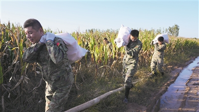 眼下,正值秋粮收获关键期,山东省夏津县出现连续降雨。该县人武部组织民兵党员先锋队帮助村民抢收粮食。靳同峰摄