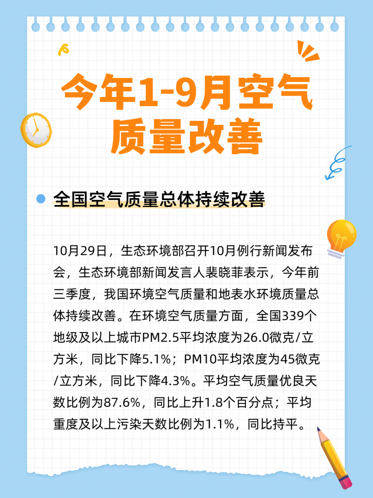 图解|今年1-9月全国平均空气质量优良天数比例为87.6%