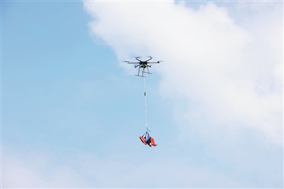 辽宁省国动委联合办公室注重挖掘高新技术企业动员潜力保障应急行动。图为日前他们组织无人机运送“伤员”训练。杨 智摄